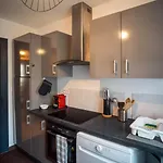 L'angolo cottura attrezzato dell'appartamento Riedheim - Colmar Proche Gare - Charme, Confort Et Calme ha una lavastoviglie e un forno. La stazione degli autobus Manufacture è a 350 metri.